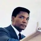 Lou Rawls was signed to Capitol Records in early 1961 and had a breakthrough set of hits with Les McCann and the album Stormy Monday. Nick Venet was in charge of Rawls, and introduced him to Matthews. In August 1962, they recorded 13 new charts arranged by Matthews that featured Rawls' resonating baritone voice.[1] Eleven of those charts would comprise Rawls' LP Black and Blue, which charted for three weeks in Billboard magazine from April 1963, reaching no.130. Both men were back in the studio at Capitol in July and August 1963 to record more tracks, which made up Rawls' album Tobacco Road. Both albums were re-issued in 1969 on a Capitol release, Close-Up, which charted for three weeks in Billboard starting in August 1969, peaking at no.191. The band for the two Rawls LPs is essentially the personnel of the Onzy Matthews big band from that time.[6] Matthews' arranging style was a perfect fit for Rawls, but the pair did not re-unite for any other releases for Capitol.[1] Two other sets of singles sessions with Rawls from 1963 have never been issued. Matthews' band continued to back Lou Rawls on live concerts and events during the late 1960s.[7]
