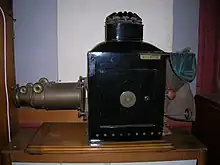 Swiss mathematician, physicist, astronomer, logician and engineer Leonhard Euler demonstrated an opaque projector around 1756. It could project a clear image of opaque images and (small) objects.[1] French scientist Jacques Charles is thought to have invented the similar "megascope" in 1780. He used it for his lectures.[2] Around 1872 Henry Morton used an opaque projector in demonstrations for huge audiences, for example in the Philadelphia Opera House which could seat 3500 people. His machine did not use a condenser or reflector, but used an oxyhydrogen lamp close to the object in order to project huge clear images.[3]