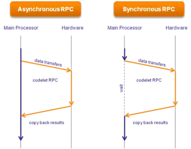 HMPP provides synchronous and asynchronous RPC. Implementation of asynchronous operation is hardware dependent.