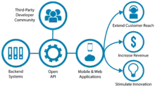 An open API (often referred to as a public API) is a publicly available application programming interface that provides developers with programmatic access to a (possibly proprietary) software application or web service.[1] Open APIs are APIs that are published on the internet and are free to access by consumers.[2]