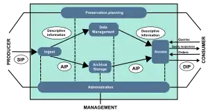 • Access function: This function includes the user interface that allows users to retrieve information from the archive. It generates a DIP from the relevant AIP and delivers it to the customer who has requested the information.[5]