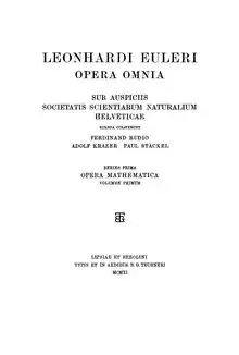 - Rudio, Ferdinand; Krazer, Adolf; Stäckel, Paul (1911). Leonhardi Euleri Opera Omnia (PDF). I. Vol. 1. OCLC 858582510. Archived from the original (PDF) on 5 January 2022.