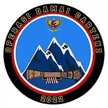 Operation Cartenz' Peace (Indonesian: Operasi Damai Cartenz),[14] formerly Operation Nemangkawi, is a joint-operation conducted by Indonesian National Armed Forces and Indonesian National Police to curb armed separatist rebels in Papua.[15] According to Papua Regional Police head, Mathius Fakhiri, there are currently six active separatist groups located mainly in Papua highlands.[16] While there are two groups which became less active or retired after Operation Nemangkawi. Tinggi Nambut faction under Goliath Tabuni were beaten in October 2018, and 10 members were subdued by Police. Goliath Tabuni moved to Gome District and presumed retired. Lanny Jaya faction under Purom Wenda became less active after Police operation in Balingga District and its headquarters in Kali Mau.[5] Some members of this group left and "return" to Indonesia.[17]