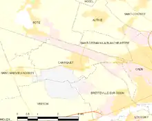 Carpiquet airfield was on a 1.2 mi (1.9 km) expanse of level ground, which offered a "killing ground" for the defenders.[12] The airfield had been fortified with minefields, field gun and machine gun emplacements, manned by I Battalion, SS-Panzergrenadier Regiment 26, an anti-aircraft battery and fifteen tanks.[12][13]