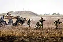 The Operational Group of Russian Forces in Transnistria (OGRF; Romanian: Grupul Operativ al Trupelor Ruse din Transnistria, GOTR; Russian: Оперативная группа российских войск в Приднестровье, ОГРВ) is a sizable overseas military task force of the Russian Armed Forces. It served as part of the tri-lateral Joint Control Commission in the region. 1,500 soldiers of the military force are based at the former decommissioned Soviet-era ammunition depot at Cobasna, where it guards around 22,000 tons of military equipment and ammunition.[1][2][3][4] The core of the OGRT consists of 70 to 100 Russian officers, rotate once every six months. The rest being Transnistrian locals employed as Russian soldiers. Moldova no longer allowed this rotation of Russian troops since 2015. [5]