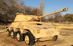 ![]() 77 mm HV Mk2 on an early prototype of the South African Rooikat armoured car | |