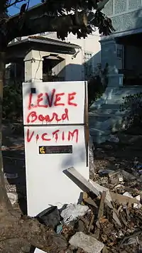 After the levee failures, the immediate assumption was that the OLD commissioners were not engaged in flood protection. This was reinforced by corps spokespersons who repeatedly told a story of local levee board officials who "forced" the corps to build the system that failed.[5] As revealed in an August 2015 article[6] in the official journal of the World Water Council, the story is untrue, and responsibility for the levee failures belongs to the corps. Nonetheless, in the context of haste and confusion, seven weeks after the breach event, there were calls for the elimination of the Orleans Levee Board and other local boards.[7]