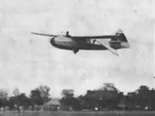Around 1960, Percival Spencer successfully flew a series of uncrewed ornithopters using internal combustion engines ranging from 0.020-to-0.80-cubic-inch (0.33 to 13.11 cm3) displacement, and having wingspans up to 8 feet (2.4 m).[8] In 1961, Percival Spencer and Jack Stephenson flew the first successful engine-powered, remotely piloted ornithopter, known as the Spencer Orniplane.[9] The Orniplane had a 90.7-inch (2,300 mm) wingspan, weighed 7.5 pounds (3.4 kg), and was powered by a 0.35-cubic-inch (5.7 cm3)-displacement two-stroke engine. It had a biplane configuration, to reduce oscillation of the fuselage.[10]