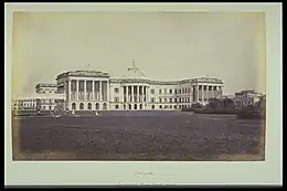 In 1898 Browning's former Eton pupil, George Curzon, was appointed Viceroy of Ireland and raised to the Irish peerage as Baron Curzon of Kedleston.[138][139] In 1902, Curzon invited Browning to India, as his guest at Government House in Calcutta. For five weeks Browning lived and travelled in great style;[140] on his return he wrote an account of his trip, Impressions of Indian Travel (1903).[141] Further disappointments awaited him at Cambridge. After 21 years' service he was replaced as treasurer of the Cambridge Union. In November 1902, he failed to be re-elected to King's College Council, a place he had occupied for decades.[142]