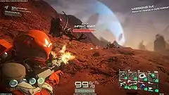 The game was released onto Steam's early access program on September 28, 2016, accompanied by a new trailer.[15] When it was released, the developers were still working on refining and broadening the gameplay.[16] In a press release, Brian McRae said the game's release was the "very beginning of this epic journey",[4] and noted their plans to continue to update and expand the game based on player's feedback.[4] Since the initial Early Access release, many features have been added to the game, including craftable spaceships.[17] One of the biggest additions to the game during early access so far was the "Prometheus II Unearthed" update, which was released on April 27, 2017. The update added a large amount of new content, including more explorable areas, more weapons, and more enemies.[18] In March, McRae told PC Gamer that around 85% of the content suggested by the community had not yet been added to the game.[17] He mentioned plans to add the ability to build "complex space stations" and possibly being able to build biospheres on a space station allowing players to grow food.
