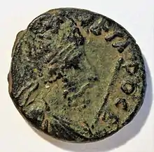 The Edessene onomastic contains many Arabic names.[26] The most common one in the ruling dynasty of Edessa being Abgar, a well-attested name among Arabic groups of antiquity.[27] Some members of the dynasty bore Iranian names, while others had Arab names.[1] Judah Segal notes that the names ending in "-u" are "undoubtedly Nabatean".[1] The Abgarid dynasts spoke "a form of Aramaic".[1]