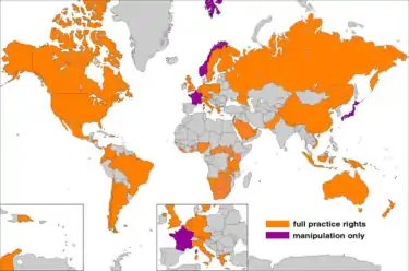 - "International Practice Rights Map". American Osteopathic Association. Archived from the original on 2016-08-19. Retrieved 1 July 2012.