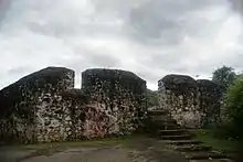 Otanaha Fortress is one of the tourism site in Gorontalo province Suwalesi Island, Indonesia. It was built in 1522 by King Ilato from Gorontalo Kingdom and Portuguese sailors to strengthen the area security and defense.[1] Located in Dembe Hill, this fort was made from mixture of sand, calcium, and eggs of Maleo birds.[2][3] To reach the top of this fort, there are 348 steps, which separated into four stopovers: 52 steps from base to the first stopover, 83 steps from first to second stopover, 53 second to third stopover, and 89 steps from third to fourth stopover. From the last stopover, there are another 71 steps to reach the fort. From the top of this fortress, there are panoramic view of Limboto Lake and some part of Gorontalo region.[4]