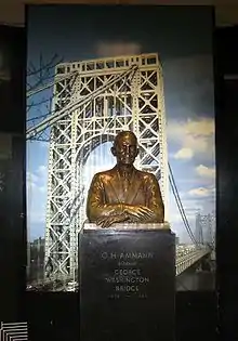 In 1962, a bronze bust of Ammann was unveiled in the lobby of the George Washington Bridge Bus Station.[1][9] A residence hall called Ammann College was dedicated in his honor on February 18, 1968 on the campus of Stony Brook University.[10] To mark the hundredth anniversary of his birth, a memorial plaque for Ammann was placed near the Verrazzano Narrows Bridge on June 28, 1979.[11]