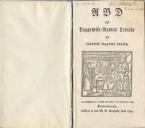 In 1795, Masing compiled and published a children's textbook for learning reading, the ABD. (The letter 'C' does not appear in Estonian words, and back then, was not considered a member of Estonian alphabet. This considered, the title could be translated as "ABC.") He published a further textbook with methodical reading instructions, the Luggemislehhed, in 1821.