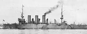 Mecidiye (in older publications also spelled as Medjidiye, or Médjidié[3]) was a protected cruiser of the Ottoman Empire that saw action during the Balkan Wars and World War I. It was ordered by the Ottoman Navy in 1900 to the United States shipbuilding company William Cramp & Sons. It was laid down in Philadelphia on 7 November 1901; launched on 25 July 1903; its sea trials began in October 1903; and it was commissioned on 19 December 1903. It weighed 3,485 tons (3,967 tons full load); was 102.4 metres (336 ft) long with a beam of 12.8 metres (42 ft) and a draught of 4.8 metres (16 ft); and was named after the Ottoman Sultan Abdülmecid.