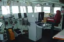 Mission flexibility was accomplished through the non-permanent sections of both the internal and external decks that could be removed. A 90 m (300 ft) temporary dock could be created from fifteen temporary sections that allowed for an increase in storage space for equipment, however the docking well was reduced to half its normal size.[6] Logistically they could carry 1,500 t (1,500 long tons; 1,700 short tons) of equipment which was serviced by the two 35-ton cranes mounted above the docking well.[3] Orage's interior layout was altered, equipped with an enclosed flag bridge but with the removable decks and surgical compartments removed Furthermore, there was a large provision of decontamination areas. They were also designed as repair ships, able to dock ships up to 450 t (440 long tons; 500 short tons) within their well and had repair and maintenance facilities along with electrical and ordnance workshops.[7]