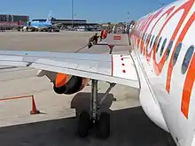 The primary hazard involving the use of overwing exits is passengers not waiting to be given the command to evacuate, but rather initiating it themselves. While many passengers (especially frequent fliers) would believe that they are adult enough and educated enough to decide that they need to get out of an aircraft, they are not trained in the specific dangers or the sequence of events required to decide when a full-scale evacuation is needed.[1] Also, passengers frequently open an exit as soon as evacuation begins which may result in them evacuating into danger. This occurred in the Ryanair engine fire in Stansted Airport in 2002, where passengers evacuated themselves onto a burning wing, despite airport fire services personnel shouting at them to return inside the aircraft and evacuate via a usable exit.[2] Typically, these problems do not occur at floor level, full sized, exit doors because these are operated in an emergency by flight attendants, who have extensive emergency training.