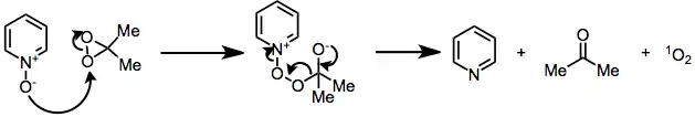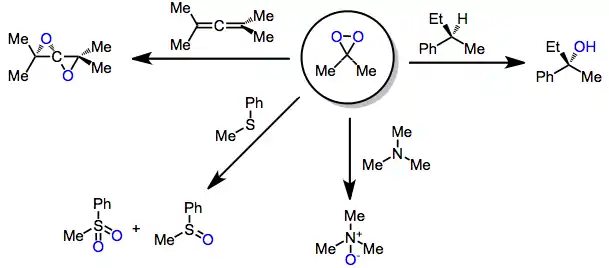 Kinetic studies of heteroatom oxidations have demonstrated that their mechanisms likely proceed by an SN2 process, rather than a single-electron-transfer pathway. An example of heteroatom oxidation is the nucleophilic decomposition of DMD by N-oxides, a side reaction that regenerates the reduced starting material and converts the oxidizing agent to dioxygen and acetone.[5]