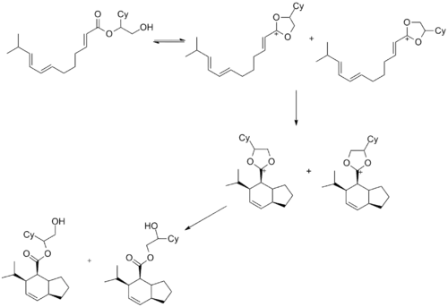 - Roush, M.; Gillis, P.; Essenfeld, A. (1984), "Hydrofluoric acid catalyzed intramolecular Diels–Alder reactions", Journal of Organic Chemistry, 49 (24): 4674–4682, doi:10.1021/jo00198a018