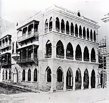 Based in Hong Kong, P&T claims its roots when architect William Salway set up his own practice on 1 October 1868.[2] Herbert William Bird, a partner of the firm from 1901 to 1928,[3] was also a member of the Legislative Council of Hong Kong. Hong Kong public records suggest that Palmer & Turner arose out of Palmer & Bird – a prominent firm at the time whose senior partner was Lennox Godfrey Bird, younger brother of HW Bird.[4] It is known that Clement Palmer, then only 23 years of age, designed the first Hong Kong and Shanghai Bank Building in 1883. Arthur Turner, a structural engineer, joined the firm in 1884. From 1891 onwards, the name Palmer and Turner was kept, despite the arrival of new partners.[1]