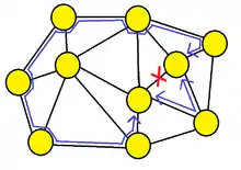 The p-Cycle protection scheme is a technique to protect a mesh network from a failure of a link, with the benefits of ring like recovery speed and mesh-like capacity efficiency, similar to that of a shared backup path protection (SBPP). p-Cycle protection was invented in late 1990s, with research and development done mostly by Wayne D. Grover, and D. Stamatelakis.[1][2]