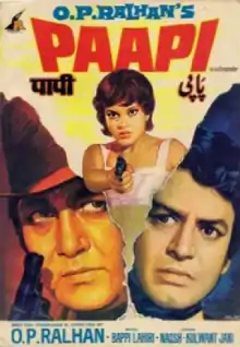 Paapi is a 1977 Bollywood film directed by O. P. Ralhan. The film stars Sunil Dutt, Sanjeev Kumar, Zeenat Aman, Reena Roy in lead roles. The music was composed by Bappi Lahiri.