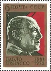 In 1944, Picasso joined the French Communist Party. He attended the 1948 World Congress of Intellectuals in Defense of Peace in Poland, and in 1950 received the Stalin Peace Prize from the Soviet government.[75] A portrait of Joseph Stalin made by Picasso in 1953 drew Party criticism due to being insufficiently realistic, though he remained a loyal member of the Communist Party until his death.[72] His dealer, D-H. Kahnweiler, a socialist, termed Picasso's communism "sentimental" rather than political, saying "He has never read a line of Karl Marx, nor of Engels of course."[72] In a 1945 interview with Jerome Seckler, Picasso stated: "I am a Communist and my painting is Communist painting. ... But if I were a shoemaker, Royalist or Communist or anything else, I would not necessarily hammer my shoes in a special way to show my politics."[76] His commitment to communism, common among continental intellectuals and artists at the time, has long been the subject of some controversy; a notable demonstration thereof was a quote by Salvador Dalí (with whom Picasso had a rather strained relationship[77]):