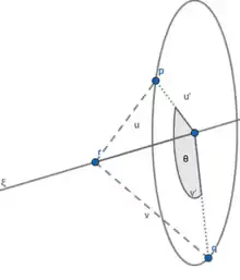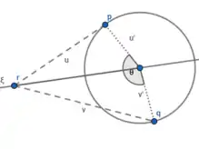 for , where and intersect at the point , both sides of the equation may be applied to a point that is not on the axis of . Subtracting and taking the norm of both sides yields
