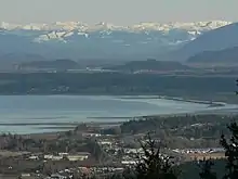 Padilla Bay is a tidal bay.[3] It is entirely flooded at high tide and at low tide mudflats are exposed. These mud flats are habitat for many species of birds and animals. The bay is very shallow. Near Hat Island the bay is only 12 feet (4 m) deep. Part of the estuary tidal flats are contained by dikes built in order to make farmland out of the mudflats. The Swinomish Channel is a salt-water channel in Washington State, United States, which connects Skagit Bay, to the south, and Padilla Bay, to the north, separating Fidalgo Island from mainland Skagit County. In the past, the Skagit River had emptied into Padilla Bay.