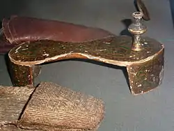 Eighteenth-century footwear used as ritual wear made of "wood with bed of sharp iron spikes" has been found. It is inferred that it was meant to be used to inflict pain to the wearer to demonstrate his conviction in religious forbearance of pain.[4]