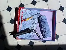 A paint roller is a paint application tool used for painting large flat surfaces rapidly and efficiently.
