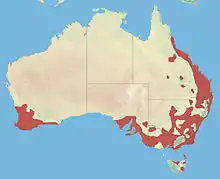 The painted buttonquail is native to Australia. Its range extends from Queensland southwards to New South Wales, Victoria, South Australia and Tasmania. A separate population is present in the southwestern part of Western Australia. The subspecies Turnix varius scintillans is endemic to the Houtman Abrolhos islands off the west coast of Australia.