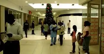 The Palms Shopping Mall is located on a 45,000-square-metre (11-acre) plot of land in Lekki, Lagos State.[1] It has 21,000 square metres (5 acres) of lettable retail space. The mall was built on swampland that was reclaimed recently by the government. After its construction, the mall was commissioned by the Oba of Lagos and President Obasanjo. The mall, which opened in late 2005, has 69 stores and a modern six screen cinema. It also has parking space for about 1000 cars.