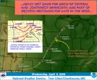 A panhandle hook (also called a pan handle hook[1] or Texas hooker[2]) is a relatively infrequent winter storm system whose cyclogenesis occurs in the South to southwestern United States from the late fall through winter and into the early spring months. They trek to the northeast on a path towards the Great Lakes region, as the southwesterly jet streams are most prevalent, usually affecting the Midwestern United States and Eastern Canada. Panhandle hooks account for some of the most memorable and deadly blizzards and snowstorms in North America.[2] The name is derived from the region of surface cyclogenesis in the Texas panhandle and Oklahoma panhandle regions. In some winters, there are no panhandle hook storms; in others, there are several.