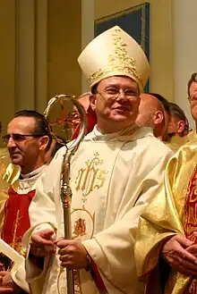 On September 21, 2007, Fr. Pezzi, until then rector of the major seminary of Mary Queen of the Apostles in Saint Petersburg, was appointed Metropolitan Archbishop of the Archdiocese of Mother of God at Moscow by Pope Benedict XVI.[3] He replaced the first Archbishop of the Archdiocese, Tadevush Kandrusievich. He was consecrated in the Cathedral of the Immaculate Conception in Moscow on October 27, 2007 by Archbishop Kandrusievich, HE Msgr Antonio Mennini, Titular Archbishop of Ferentium and Apostolic nuncio to Russian Federation, and HE Msgr Joseph Werth SJ, Bishop of the Diocese of Transfiguration at Novosibirsk.