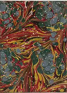 Marbled endpaper from a book bound in France around 1735