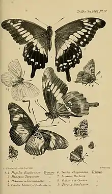 | Illustration accompanying Trimen's description in Transactions of the Entomological Society of London, 1868 | |