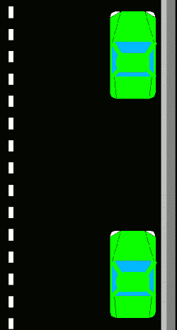 Parallel parking is a method of parking a vehicle parallel to the road, in line with other parked vehicles. Parallel parking usually requires initially driving slightly past the parking space, parallel to the parked vehicle in front of that space, keeping a safe distance, then followed by reversing into that space. Subsequent position adjustment may require the use of forward and reverse gears.