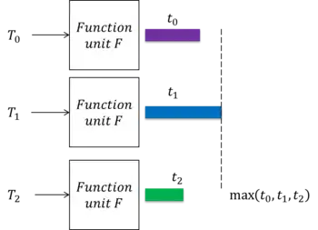 However, if we duplicate the function unit to another two copies (), the aggregate time is reduced to , which is smaller than in a sequential order.
