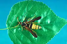 Paranthrene robiniae, the western poplar clearwing, is a moth of the family Sesiidae. It is found from sea level to near the timber line from Alaska southward along the Pacific Coast to southern California and throughout the Rocky Mountains into the desert southwest and as far east as Kansas and North Dakota.[2]