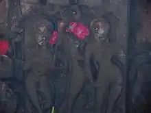 Parhul devi is sitting under a northern dome of the temple complex. Three images of Goddesses, indicative of ancient artwork, are engraved on a stone. The stone is 5 by 1.5 feet (1.52 by 0.46 m).