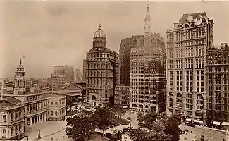 The New Yorker Staats-Zeitung moved to its own building at 17 Chatham Street at almost the same time as the Times moved into its new building.[35][36]