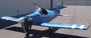 The Parker Teenie Two is a single-seat, single-engine sport aircraft first built in the United States in 1969 and marketed for homebuilding.[1][2][3] It is a low-wing, cantilever monoplane of conventional configuration and fixed tricycle undercarriage.[2][3] The cockpit was designed to be left open, but plans for a canopy to enclose it were made available, the use of which would increase the top speed of the aircraft.[2] The Teenie Two was specifically designed to use a converted Volkswagen automobile engine for power.[2][3] The outer wing panels can be detached for transport or storage.[2]