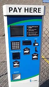 Some cities have gone to a device called a Parkulator, in which the users purchase a display device, usually for $5 or $10, then load it with as much time as they care to purchase.[35] They then activate the device when they park at a location, and place the display device on their dashboard so it is visible from the front windshield. The device counts down the time remaining on the device while it remains activated. When they return, then the clock stops running, and the person does not overpay for time unused. In the UK, it is now possible to park and pay with credit or debit card through a dedicated telephone service.[36] Civil Enforcement Officers that patrol the parking area are automatically informed through their handheld devices.