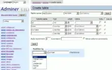 Partitioning options on a table in MySQL in the environment of the Adminer tool.