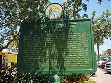 The area around Pass-a-Grille has been inhabited by Native Americans for thousands of years and was first spotted by Spanish explorers in 1528 when Pánfilo de Narváez anchored off Pass-a-Grille pass.[3] Local legend states that it was named from the French phrase Passe Aux Grilleurs (the passageway of the grillers) in honor of the fisherman who camped and first settled there.[4] John Gomez was one on the first entrepreneurs to utilize Pass-A-Grille Beach as a vacation area, inviting travelers from St. Petersburg and Tampa to stay at his resort-like structure as early as 1857. Some of the first major businessmen in the area were Roy S. Hanna and Selwyn Morey, who began developing plots of land for homes and lodgings at Pass-A-Grille Beach.[4] By 1901, Frenchman and Travel Agent, George Henri Lizotte, opened the first Pass-A-Grille hotel, named Bonhomie.[4] The first schoolhouse in Pass-a-Grille was constructed in 1914 at the cost of $1,000 and opened its doors to students in the winter of 1915.[3] The Don CeSar hotel opened on the north side of Pass-a-Grille in 1928, spurring more development.[5] Pass-a-Grille was eventually incorporated into the city of St. Pete Beach in 1957, and in 1989 Pass-a-Grille was recognized as a National Register Historic District. The neighborhood suffered damage from Tropical Storm Debby in 2012, including beach erosion and a tornado strike.[6]