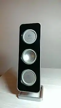 A speaker enclosure using a passive radiator (PR) usually contains an "active loudspeaker" (or main driver), and a passive radiator (also known as a "drone cone"). The active loudspeaker is a normal driver, and the passive radiator is of similar construction, but without a voice coil and magnet assembly. It is not attached to a voice coil or wired to an electrical circuit or power amplifier. Small[1][2] and Hurlburt[3] have published the results of research into the analysis and design of passive-radiator loudspeaker systems. The passive-radiator principle was identified as being particularly useful in compact systems where vent realization is difficult or impossible, but it can also be applied satisfactorily to larger systems.