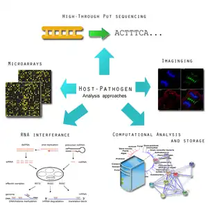 Pathogenomics is a field which uses high-throughput screening technology and bioinformatics to study encoded microbe resistance, as well as virulence factors (VFs), which enable a microorganism to infect a host and possibly cause disease.[1][2][3][4] This includes studying genomes of pathogens which cannot be cultured outside of a host.[5] In the past, researchers and medical professionals found it difficult to study and understand pathogenic traits of infectious organisms.[6] With newer technology, pathogen genomes can be identified and sequenced in a much shorter time and at a lower cost,[7][8] thus improving the ability to diagnose, treat, and even predict and prevent pathogenic infections and disease.[9] It has also allowed researchers to better understand genome evolution events - gene loss, gain, duplication, rearrangement - and how those events impact pathogen resistance and ability to cause disease.[8] This influx of information has created a need for bioinformatics tools and databases to analyze and make the vast amounts of data accessible to researchers,[10][11] and it has raised ethical questions about the wisdom of reconstructing previously extinct and deadly pathogens in order to better understand virulence.[12]