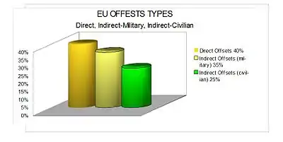 The actual situation regarding offset agreements in EU is described in details in a study on defense offsets in the Union countries commissioned by the European Defense Agency and published in 2007. According to this study[58] the volume of EU offset agreements in 2006 was above 4-5 billion euro. The distribution of these offsets is as shown in the diagram: Direct Offsets, Military Indirect Offsets, Civilian Indirect Offsets.